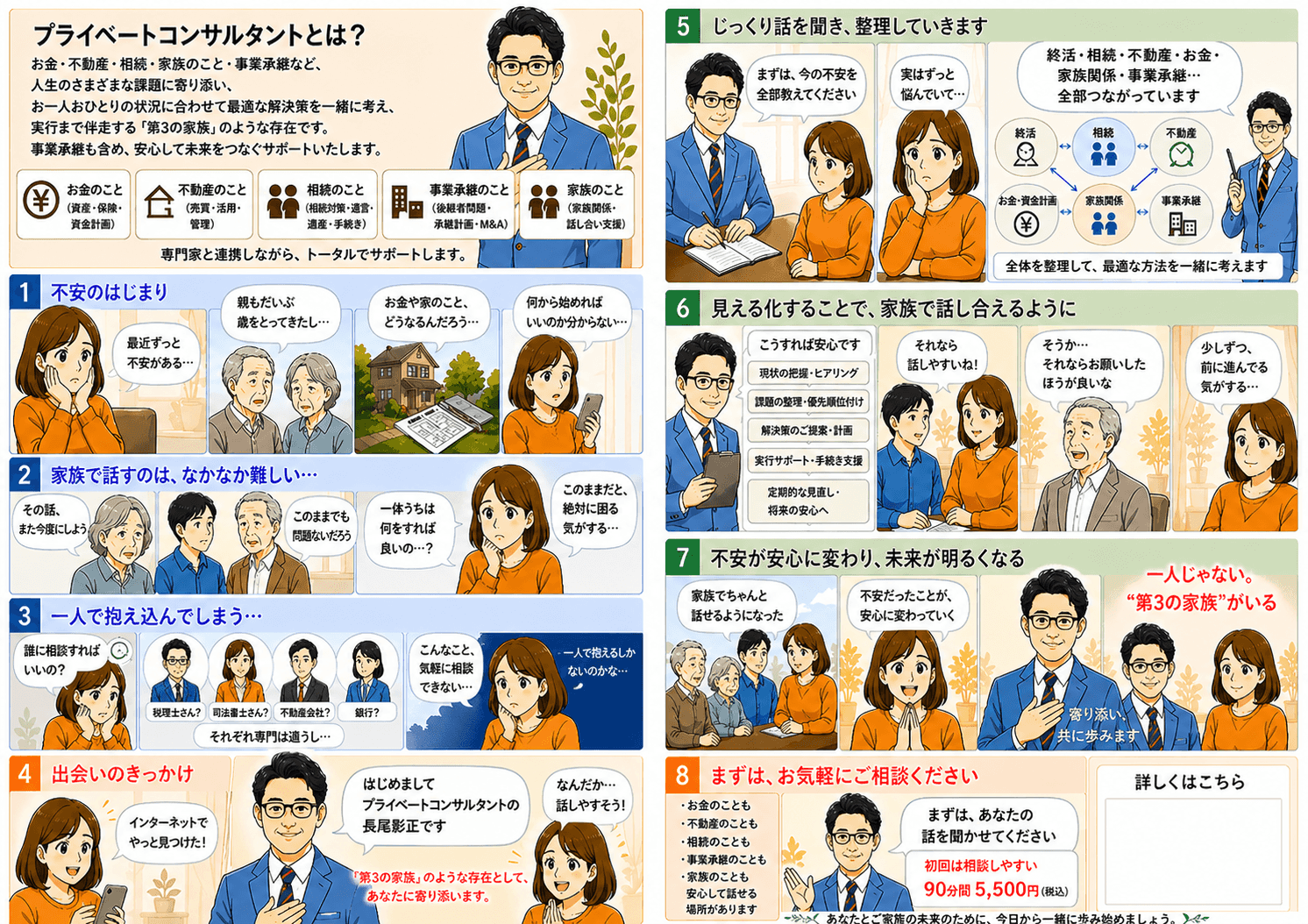 行政書士長尾影正事務所では、相続・事業承継・終活・不動産に関する幅広いお悩みを承っております。