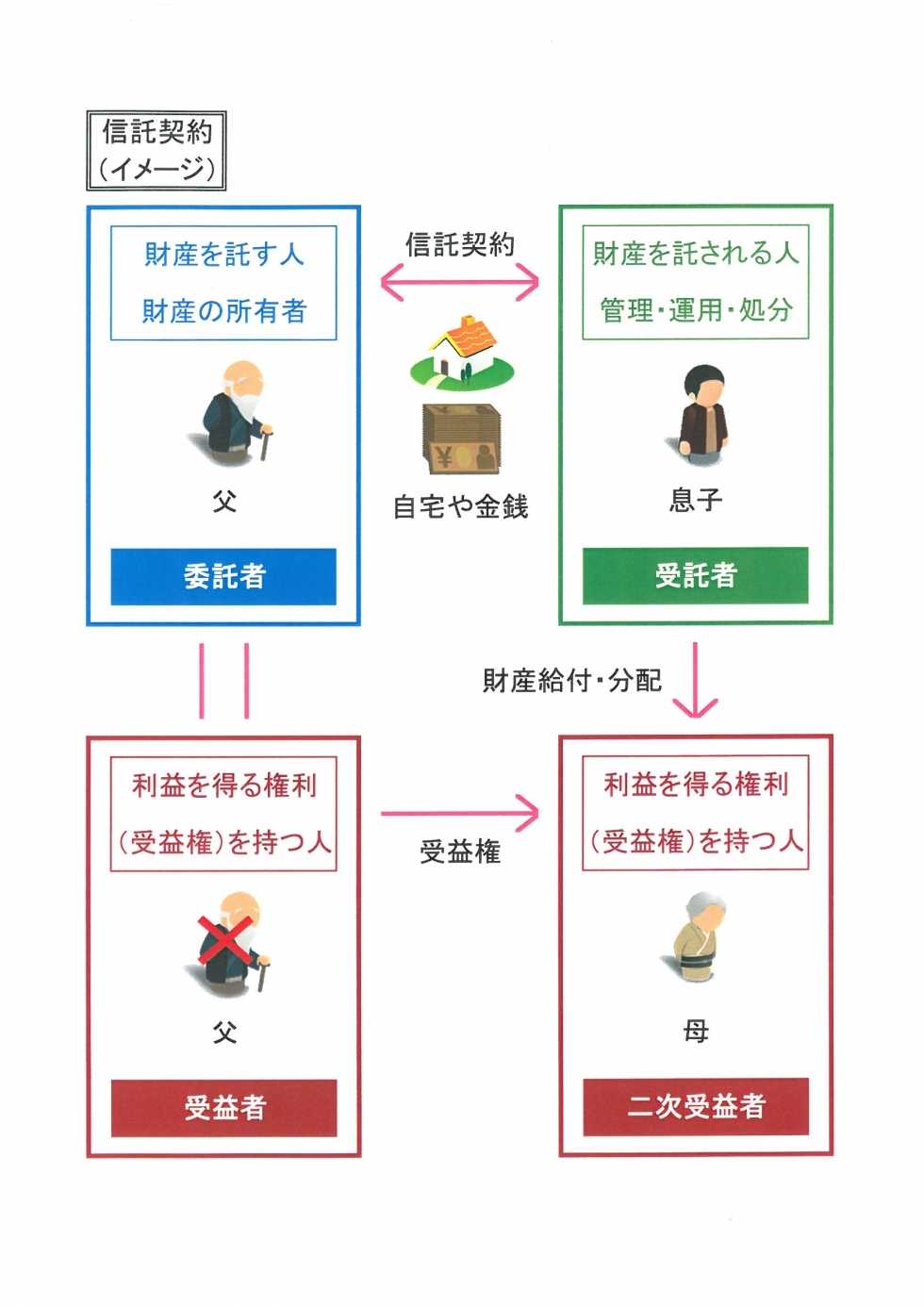 たとえば「父が死亡したら、父が有していた信託財産(受益権)を母が取得する」